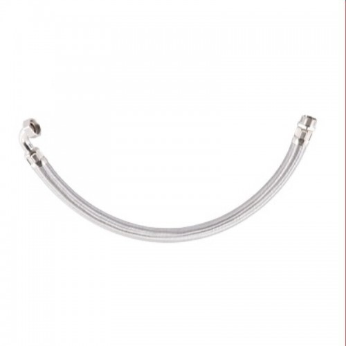 Нержавеющая оплетка, повышенная стойкость к скручиванию. Присоединительный размер 1 дюйм. 90 градусов - угол для удобного подключения к гидроаккумулятору.